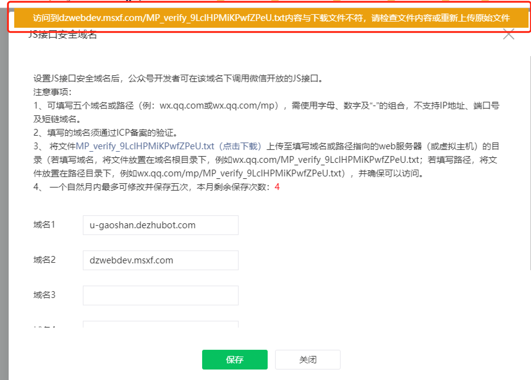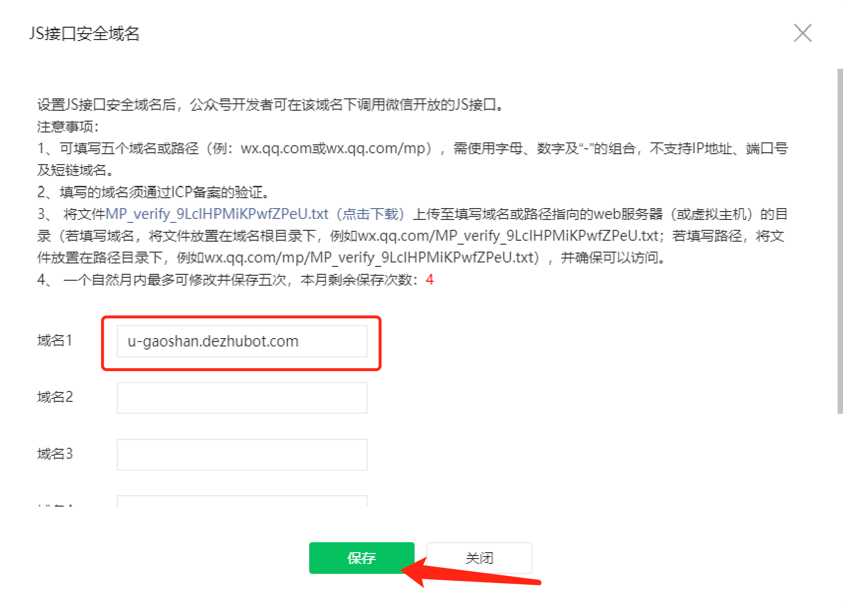 步骤一、微信公众平台设置“JS接口安全域名”,提供安全认证文件(如下图),需该文件成功放置平台路径目录后,再进行后面步骤;