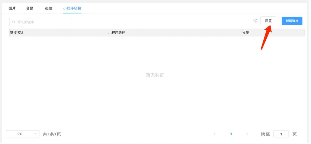 【素材管理】-【小程序链接】点击设置,填写关联公众号信息