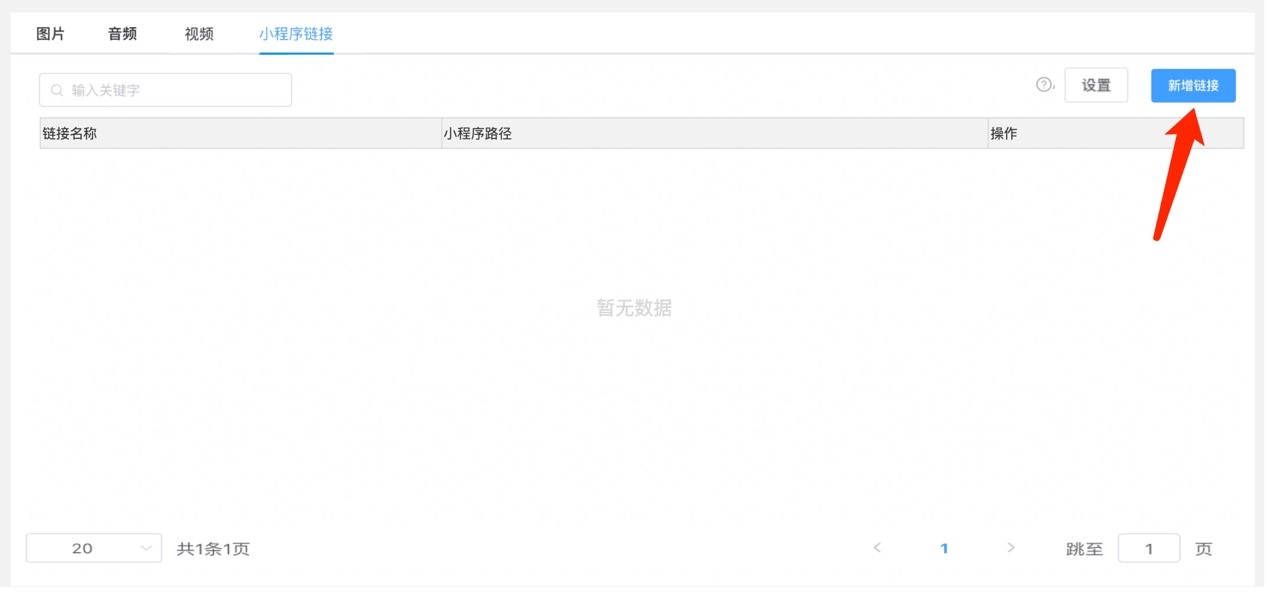 【素材管理】-【小程序链接】点击新增链接,根据弹窗填写相关信息;