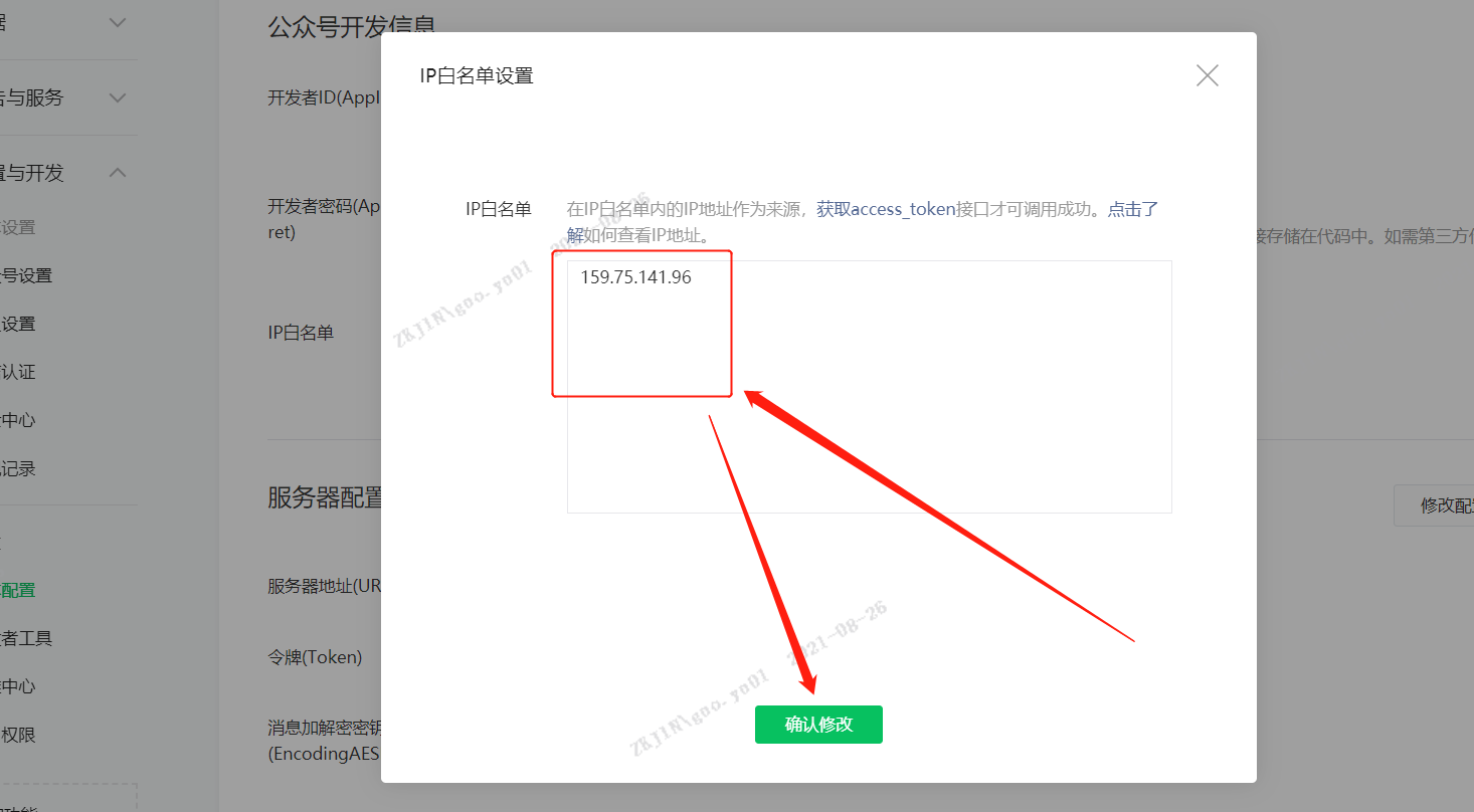 步骤三、微信公众号【开发】中设置IP白名单,操作方式如下: